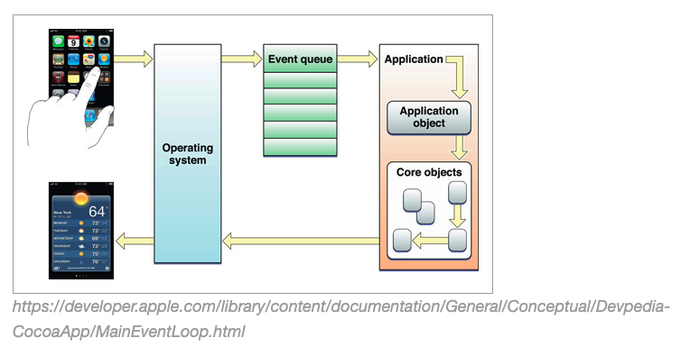 - 본질적으로 사용자 입력 event를 해석하고 그에 해당하는 handler들을 core object에서 불러오는 식으로 run loop가 실행된다.