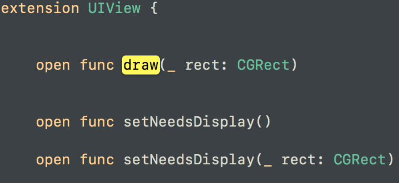 UIView의 draw ( Objective-C 에선 drawRect )는 view의 콘텐츠를 layuoutSubviews에서 위치와 크기를 조정하는 것 과 같은 메서드이다. 그러나, 이것은 subview에서 draw 메서드를 호출하진 않는다. layoutSubviews와 같이 직접 draw 메서드를 호출해선 안되며, run loop 동안 다른 지점에서 draw 메서드를 호출해야 한다.