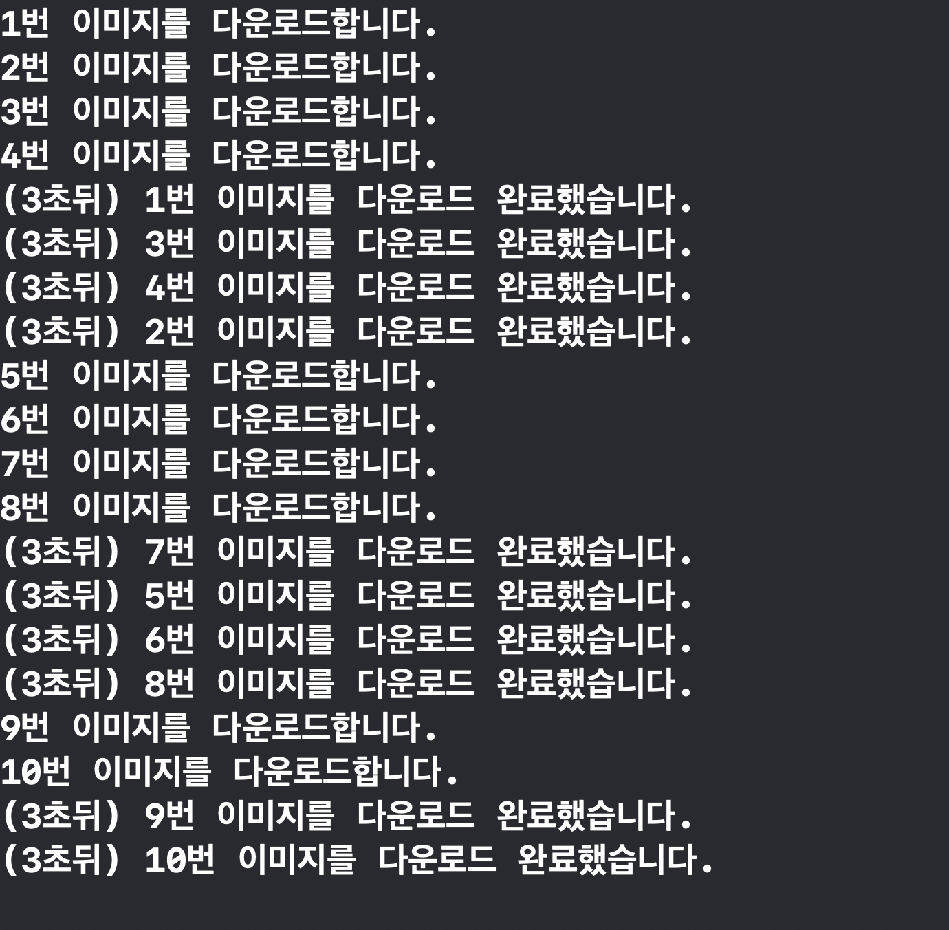 print("(3초뒤) \\(i)번 이미지를 다운로드 완료했습니다.")