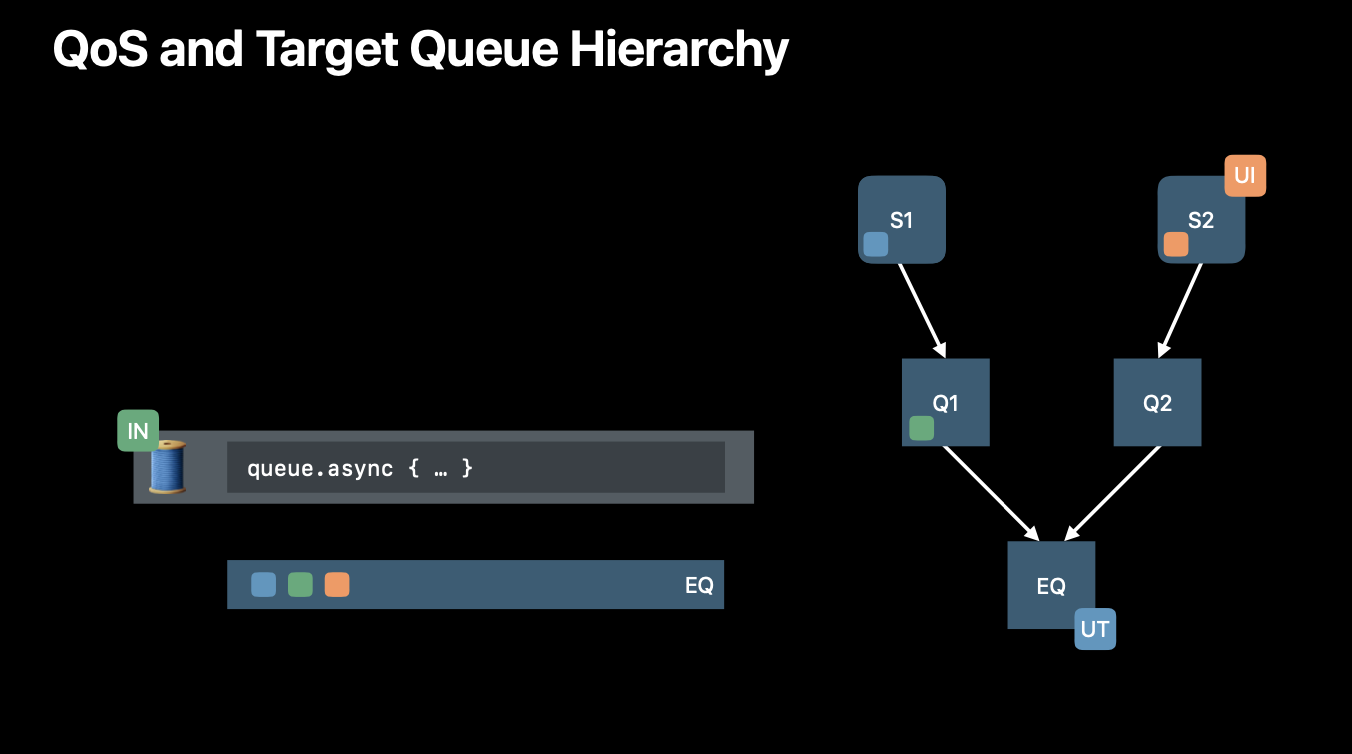 위 두 개념을 결합하여 target queue hierarchy를 얻을 수 있다.