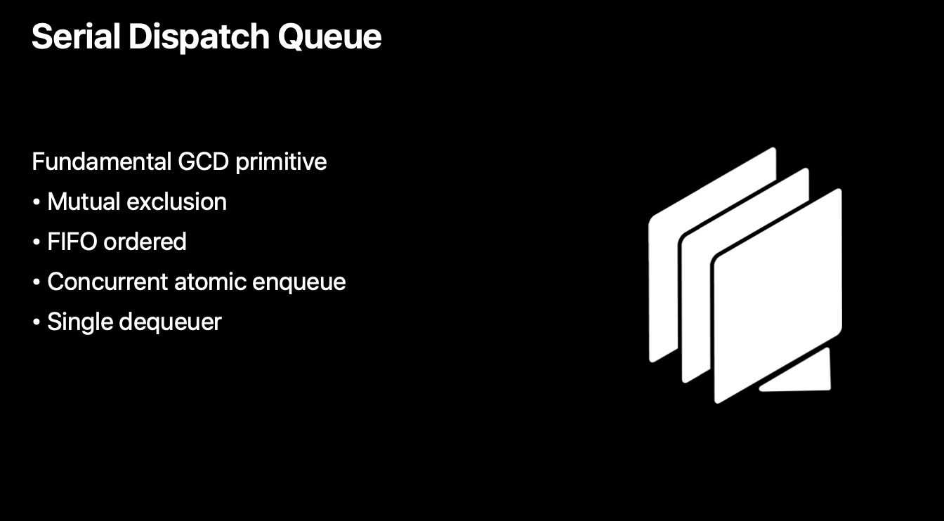 Serial queue는 FIFO(First In First Out) 방식으로 작업을 처리하며, 큐에 여러 개의 작업을 추가하는 것이 원자적(atomic)으로 이루어지기 때문에 다중 스레드에서 작업을 추가하더라도 안전하게 처리된다. 따라서 큐에 여러 개의 작업을 추가하는 것도 안전하고, 큐에서는 내부에서 먼저 추가된 작업부터 차례대로 처리된다. 이를 통해 동기화(mutual exclusion)를 구현할 수 있다.