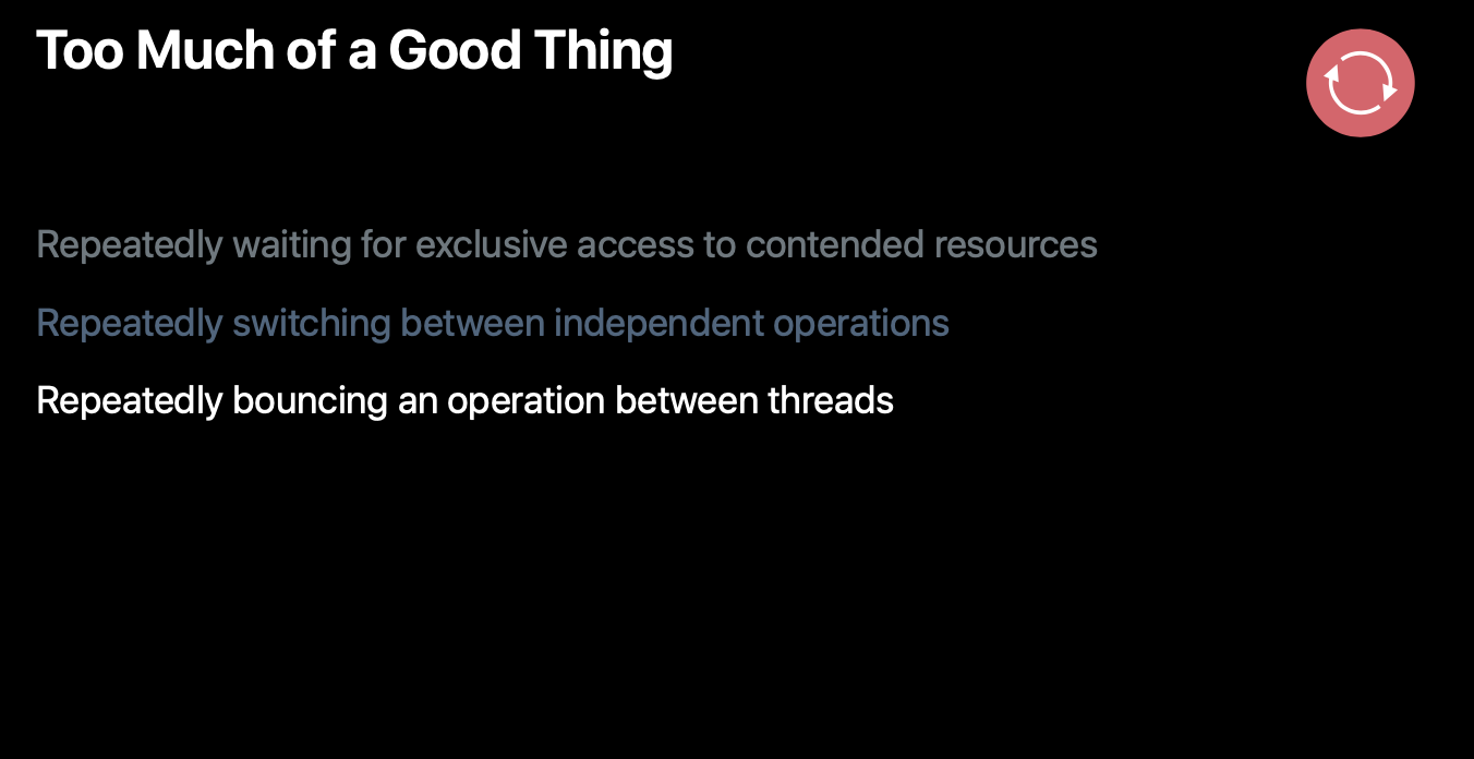 애플리케이션에서 올바른 동시성 개수를 선택하는 것은 스레드 폭발등의 위험한 패턴을 피할 수 있는 방법이다. 위에서 추천한 방법은 하나의 subsystem 마다 하나의 serial queue를 사용하여 동기화작업을 수행하게 하는 것이다.