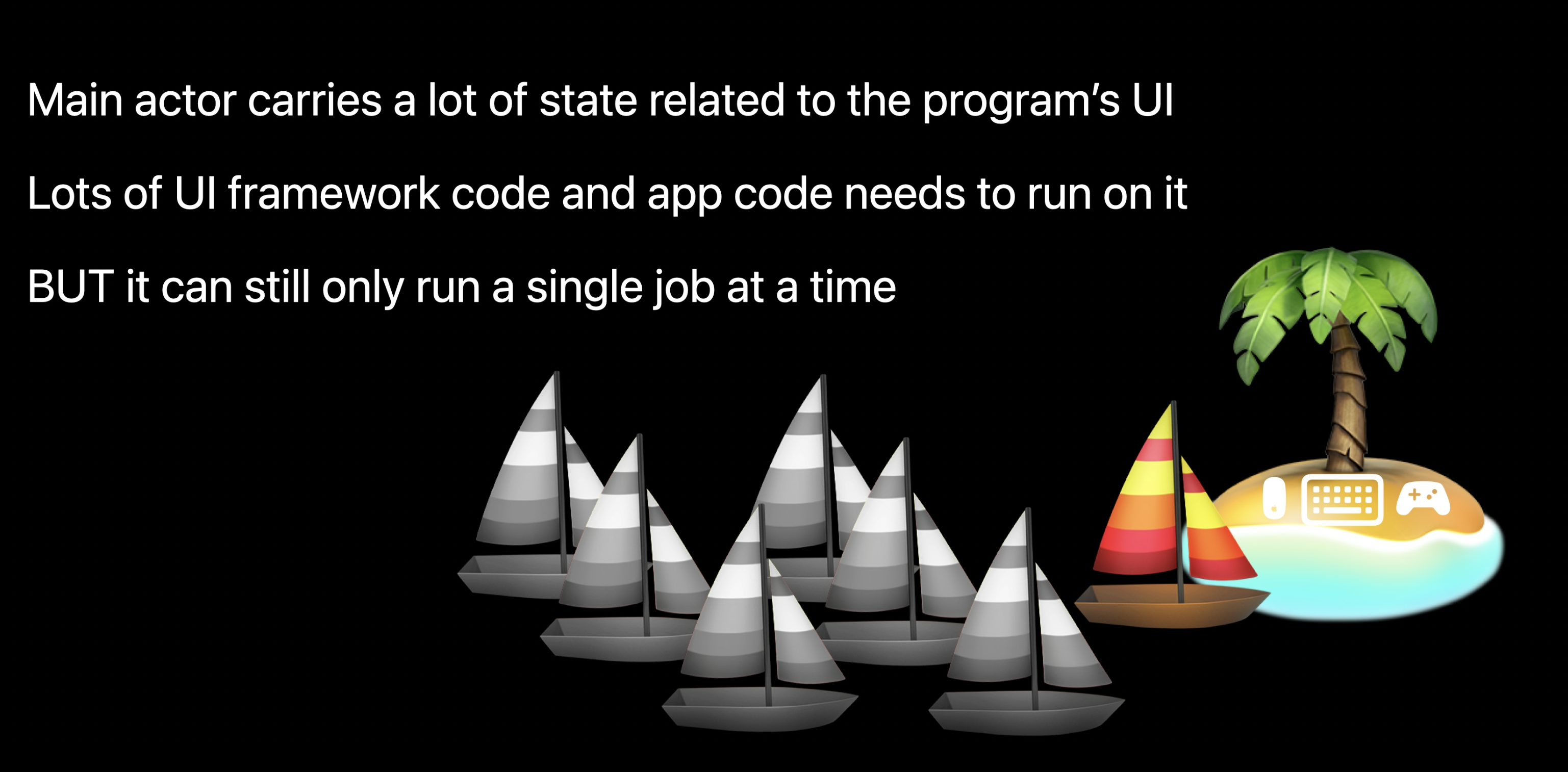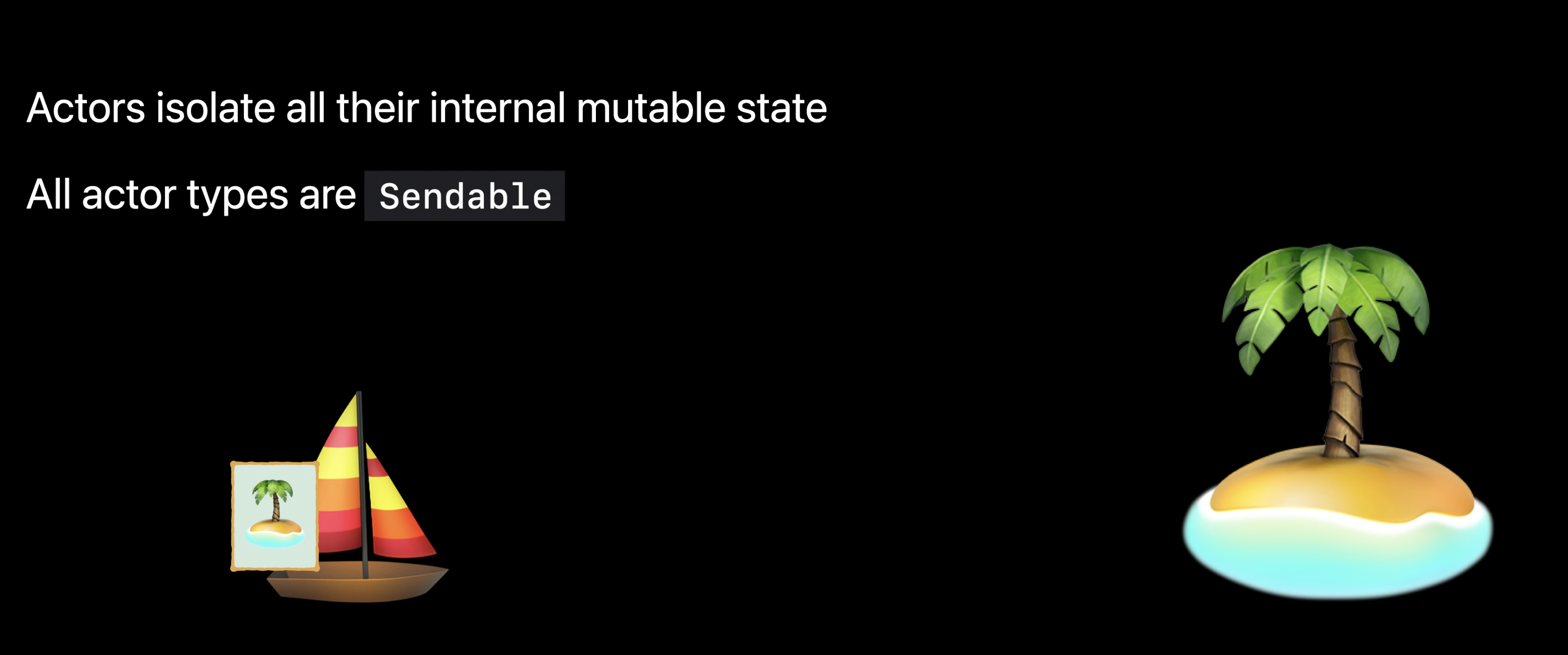 두 보트가 바다 위에서 만났던 것처럼, 보트와 섬 사이의 상호작용은 non-Sendable 타입이 둘 사이를 통과하지 않도록 하여 격리를 유지해야 한다.