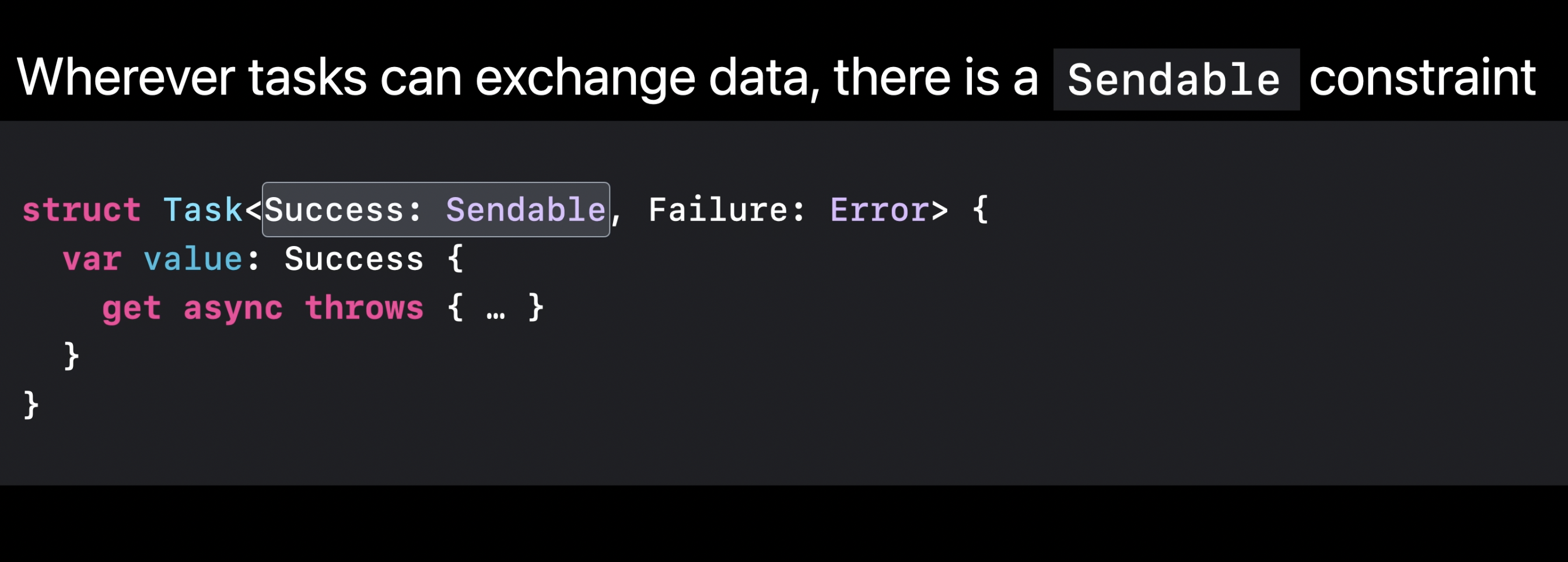 Task 구조체는 Suceess라는 결과 타입이 Sendable을 준수해야 한다고 정의한다.